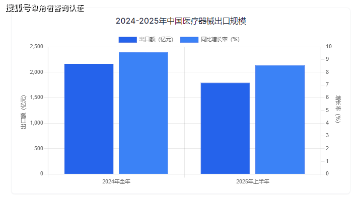 中邦医疗东西财产近年来连接连结稳妥增加,已成为环球医疗东西墟市的紧张供应邦。2025年上半年,中邦医疗东西出口额达1793.33亿元,同比增加8.55%,显示出强劲的邦际逐鹿力。正在环球生意境况丰富众变的布景下,中邦医疗东西出口仍然连结韧性,特别正在医用耗材、医疗兴办等周围变成了明显的出口上风。