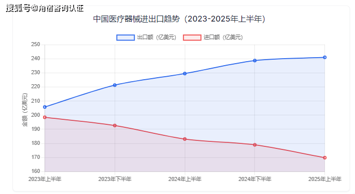 2025年上半年,中邦医疗东西进出口总额达410.9亿美元,此中出口额241.0亿美元,同比增加5.0%;进口额169.9亿美元,同比降落3.9%,实行生意顺差71.1亿美元。这一数据声明中邦东西对外生意无间连结顺差形态,邦际逐鹿力连接巩固。